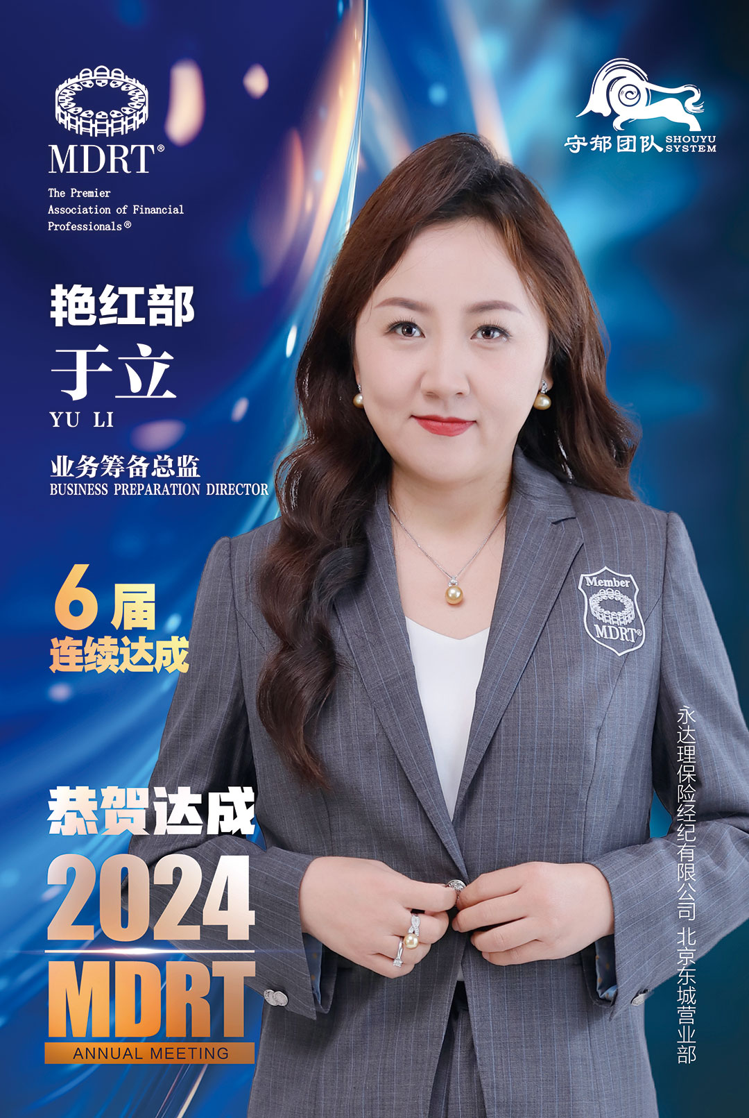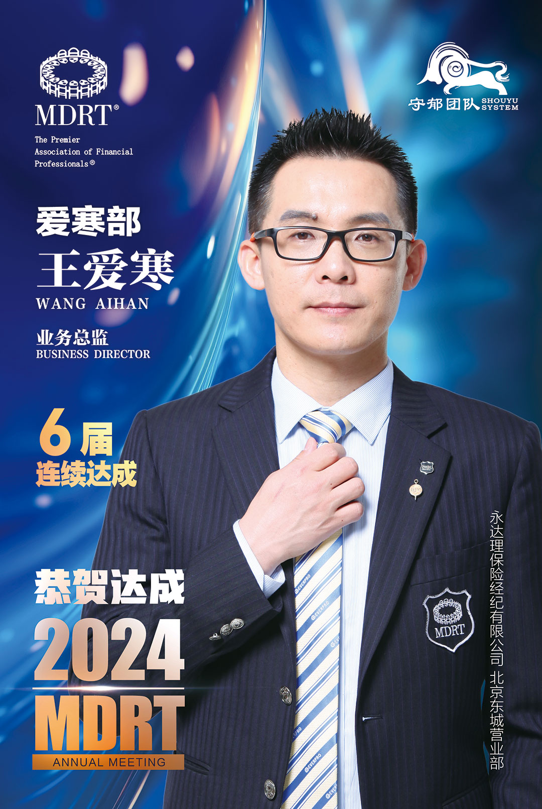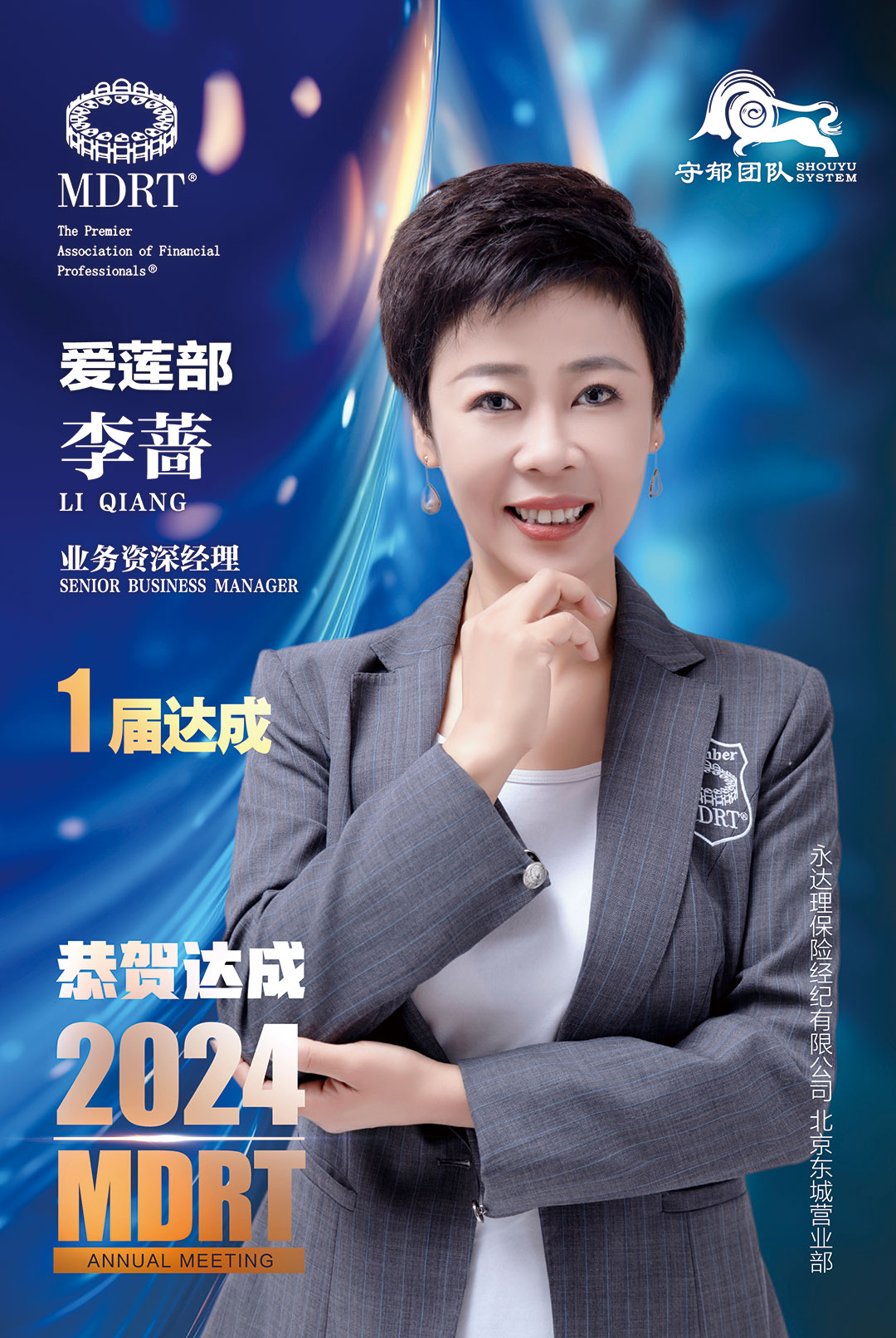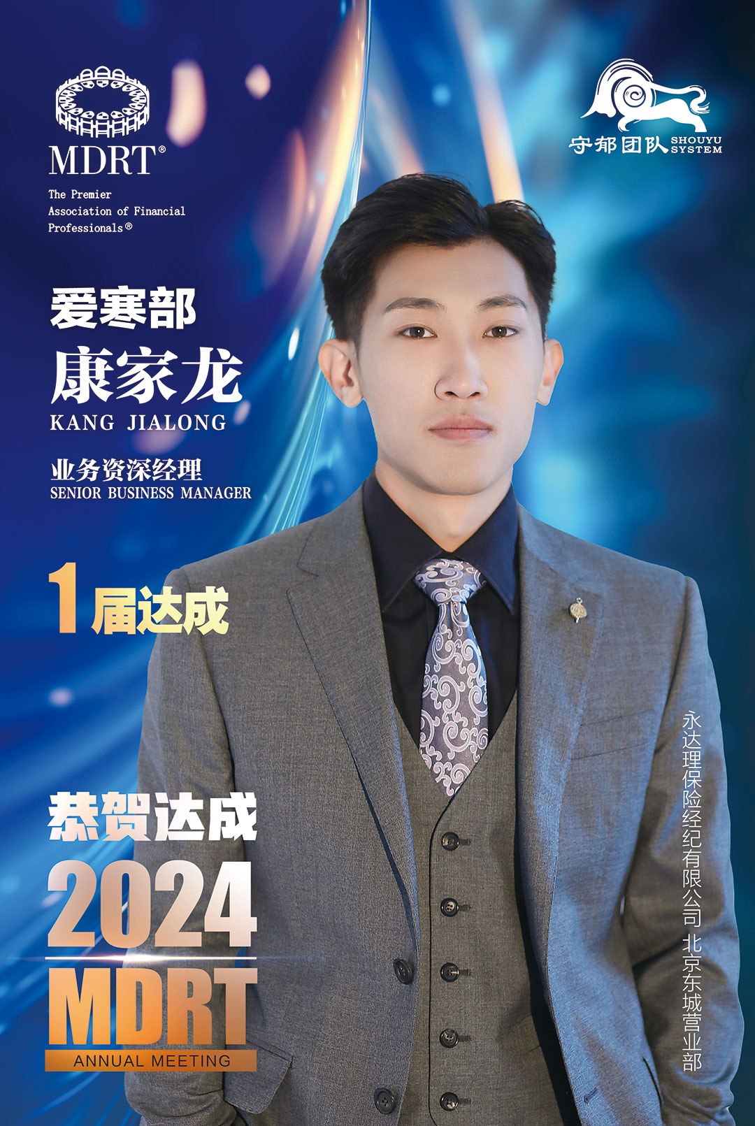 黑龙江分公司业务资深区域总经理。 连续15届百万圆桌终身会员 连续多届IDA华人龙奖白金奖