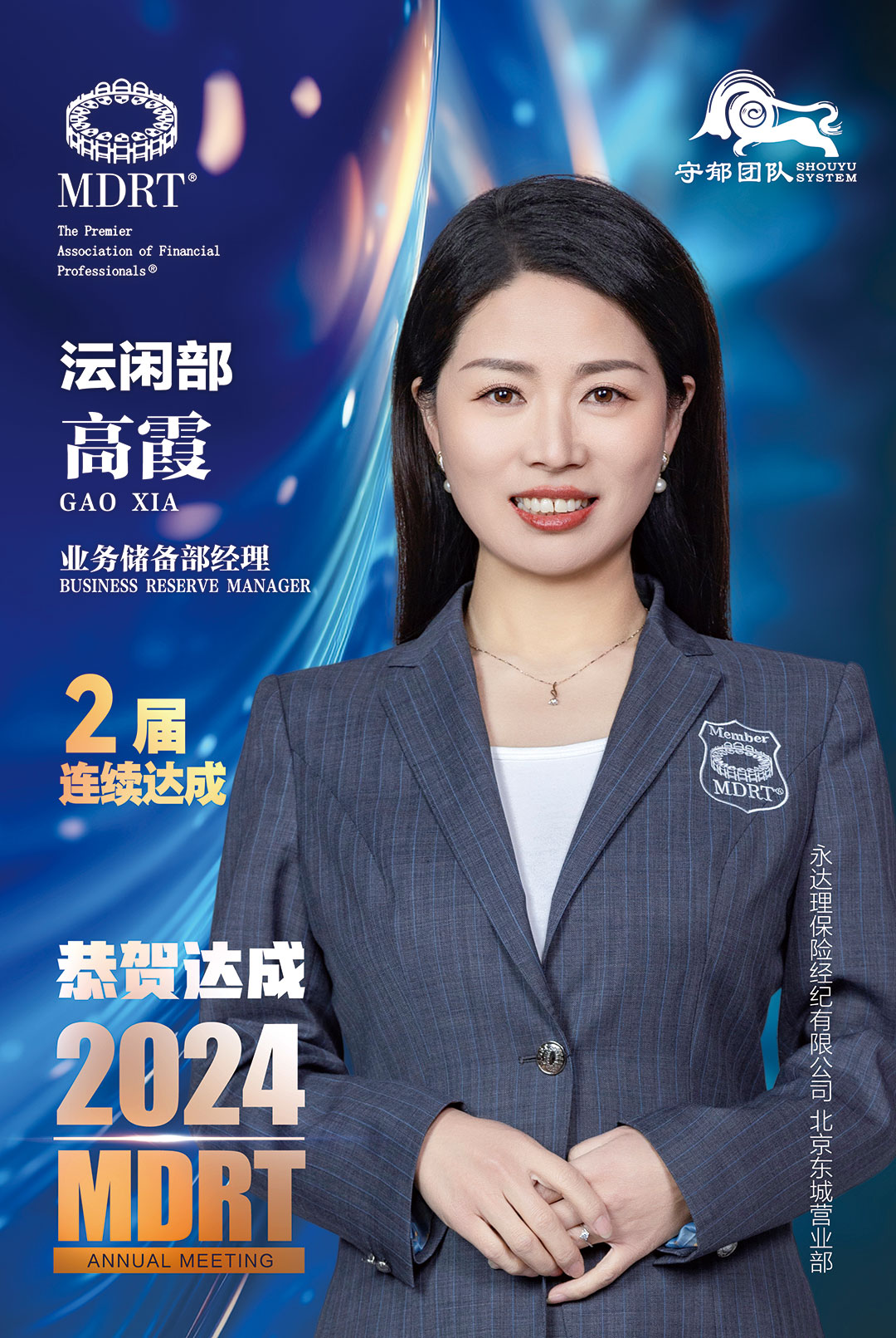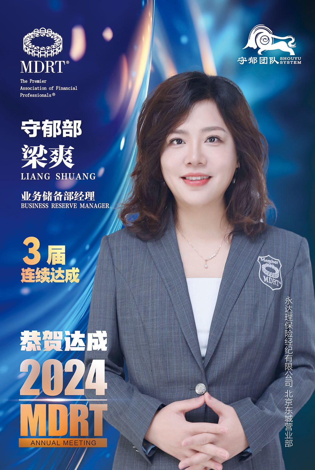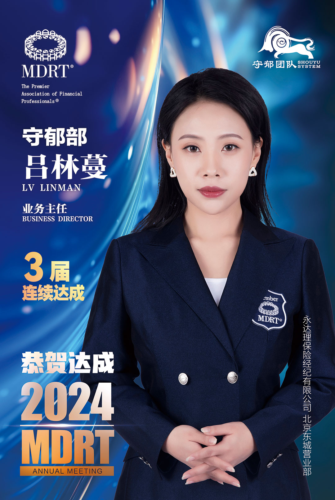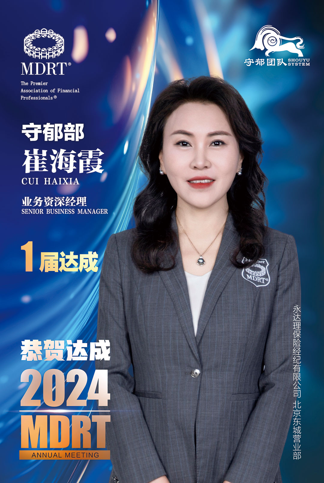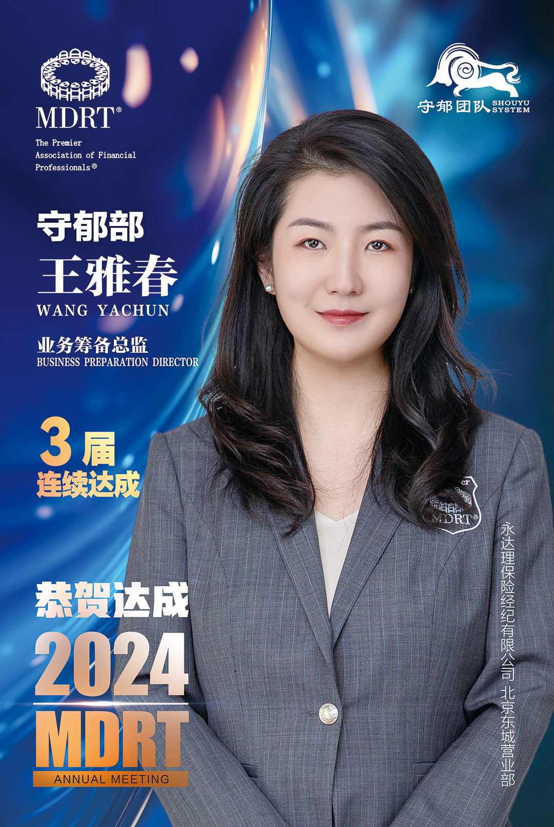 黑龙江分公司业务资深区域总经理。 连续15届百万圆桌终身会员 连续多届IDA华人龙奖白金奖