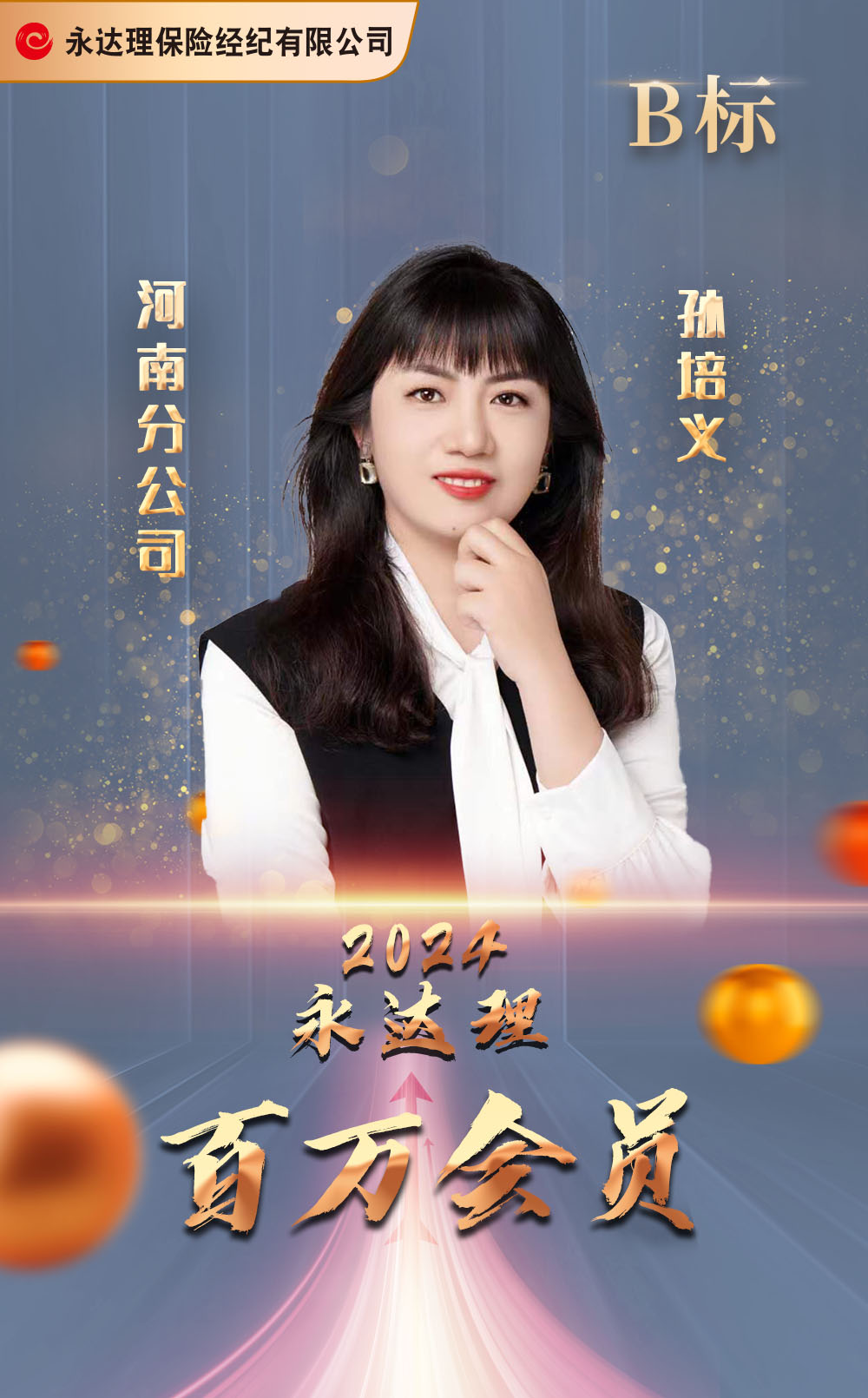 两岸地区辖下共39个营业网点,培育2位业务区域总经理、20位业务副总、70位业务总监、上千位业务组织高手,累计培育百万圆桌终身会员27位,百万圆桌会员达3000+人次。达成24届百万圆桌终身会员(1届七倍、3届三倍)、19届国际龙奖IDA主管组白金奖终身会员、15届国际龙奖IDA终身会员、4届中国之星TMC千万圆桌会员奖、4届中国之星CMF主管组钻星奖、4届中国之星CMF主管组金星奖、5届中国之星CMF业务员组银星奖、5届中国保险IMA保险名家白金奖、2024年中国寿险中介精英人物-先进管理奖、2023年胡润中国保险人物杰出人物奖、2022年中国寿险中介精英人物-管理精英奖、2022年福布斯中国保险精英黄金奖、2017年世界杰出名人榜飞跃成就奖、2016年第18届保险信望爱最佳社会贡献奖等。著有《变,就是不变:保经女王的业务胜经》、《保驾护航丛书》等保险行业著名书籍。
