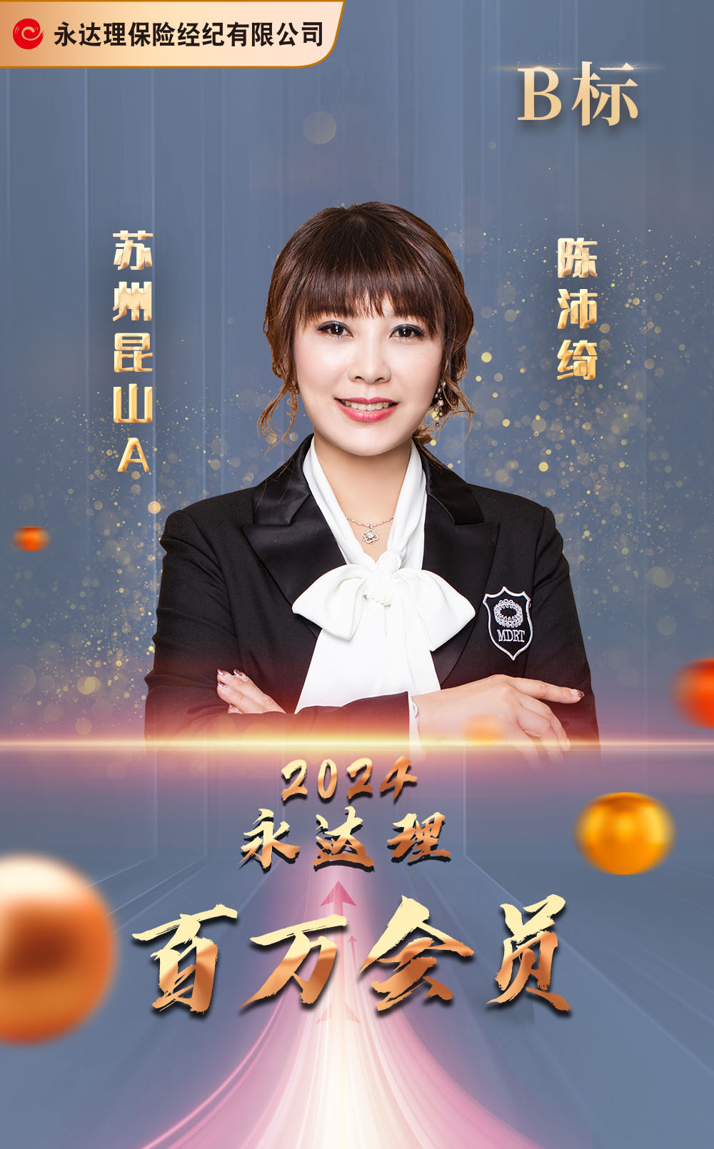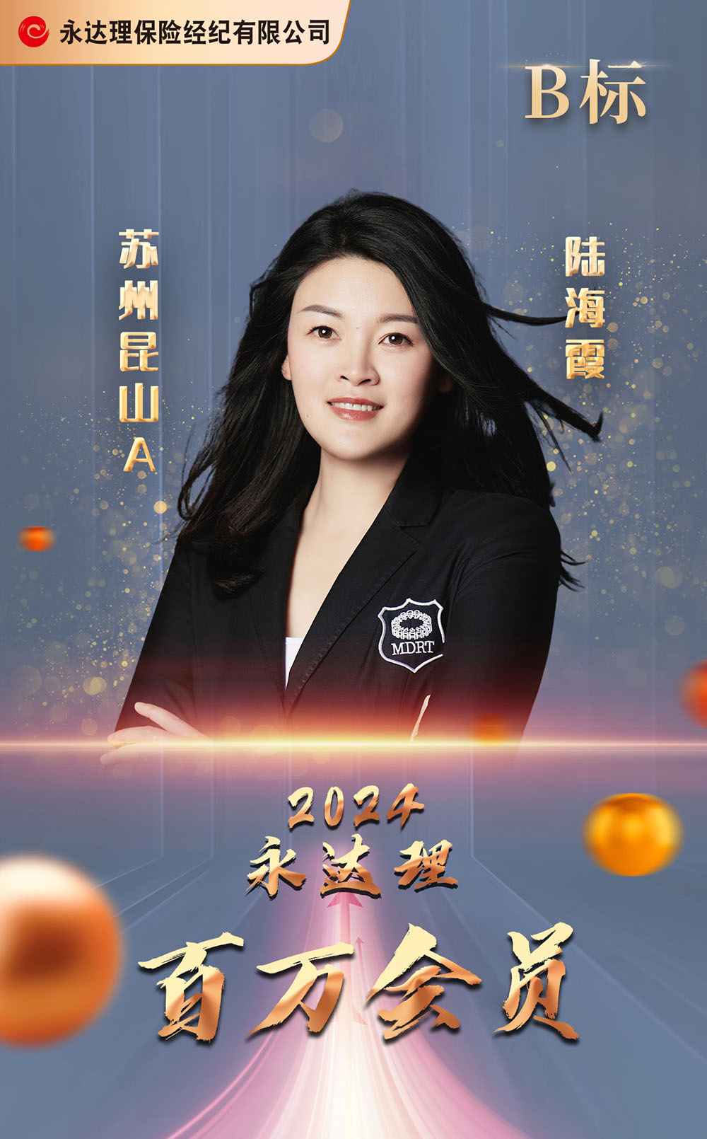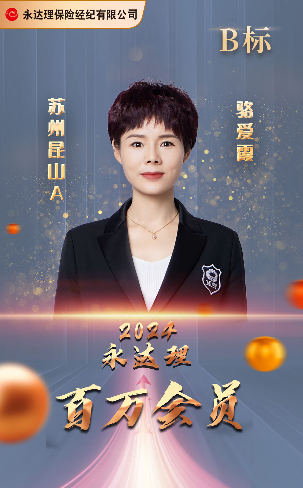 保险年资:24年(2023) 九届百万圆桌会员 三届福布斯黄金奖/白银奖 五届保险名家金奖/名家奖 二届TMC千万圆桌标准会员奖 二届中国保险之星CMF主管组钻星奖 三届中国保险之星CMF主管组银星奖 四届中国保险之星CMF个人组银星奖 旭腾家办联合创始人 培育近百人次百万圆桌会员 美国注册财务策划师(RFP) 保险名家江苏-区域副主席及理事 2012年 太平洋蓝鲸会员 2013年 太平洋杂志封面人物 2017年 中国保险之星CMF主管组银星奖 2017年 2月晋升营业部总监 2018年 中国保险之星CMF主管组钻星奖 2019年 12月辖下育成爱霞筹备部 2021年 荣获保险名家奖 2021年三亚/贵阳高手交流 2022年珠海/澳门高手交流 2023年IMA保险名家